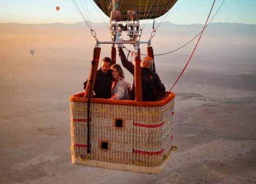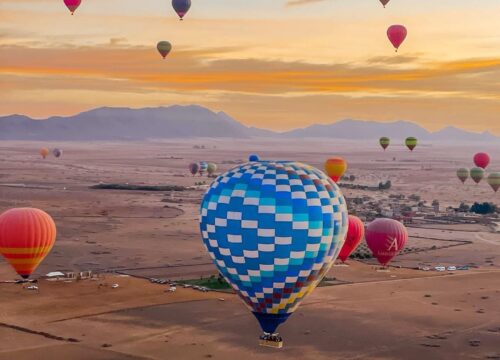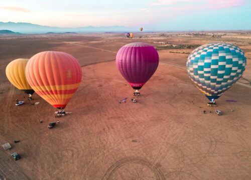 Offrez-vous une aventure inoubliable aux premières lueurs du jour : un vol en montgolfière au-dessus des paysages spectaculaires de Marrakech et du désert d’Agafay.